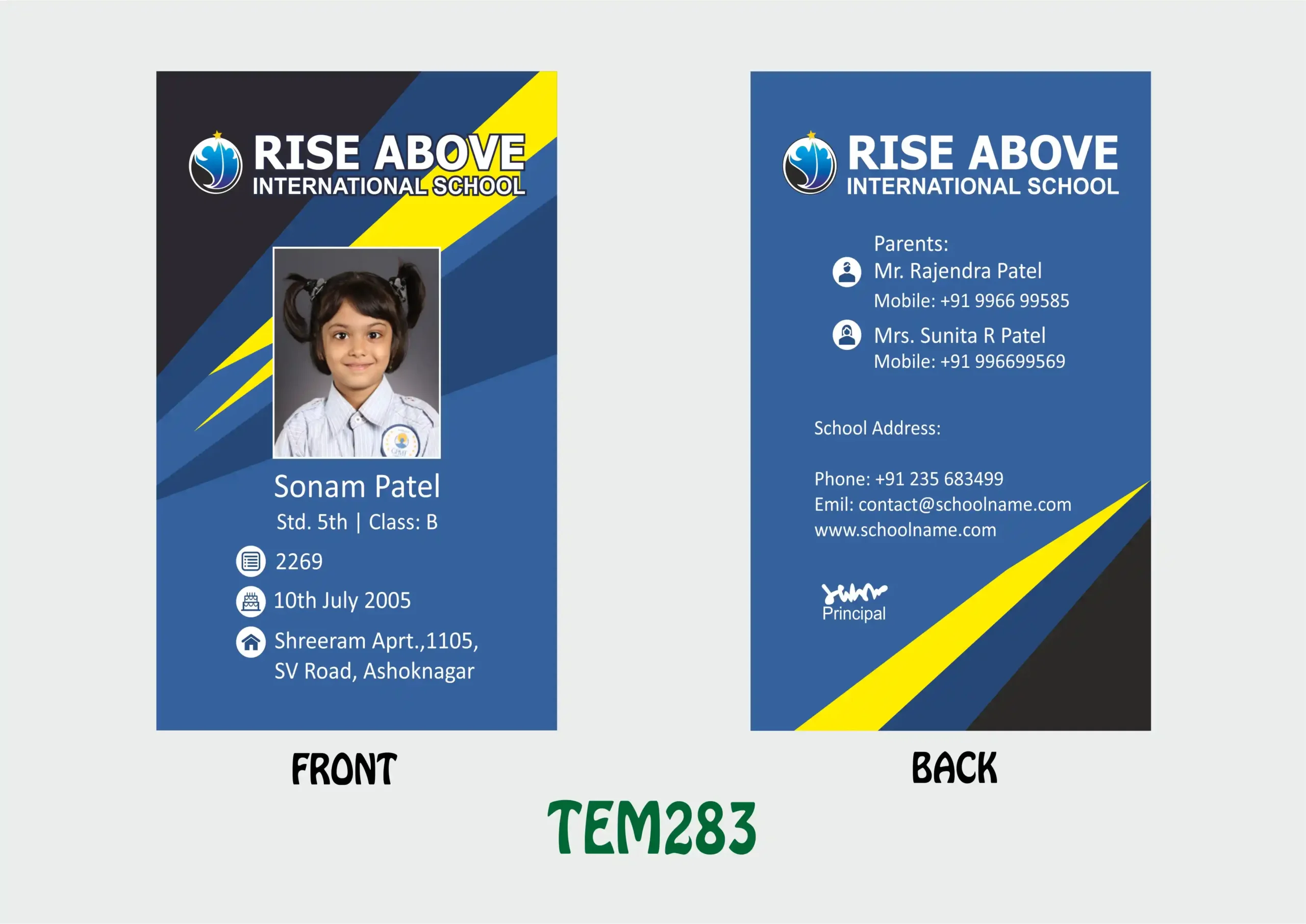 Our ID Card Templates are professionally designed and fully editable, suitable for schools, colleges, offices, factories, hospitals, coaching institutes, and corporate use. These templates help you create clean, professional, and uniform ID cards in minimum time.