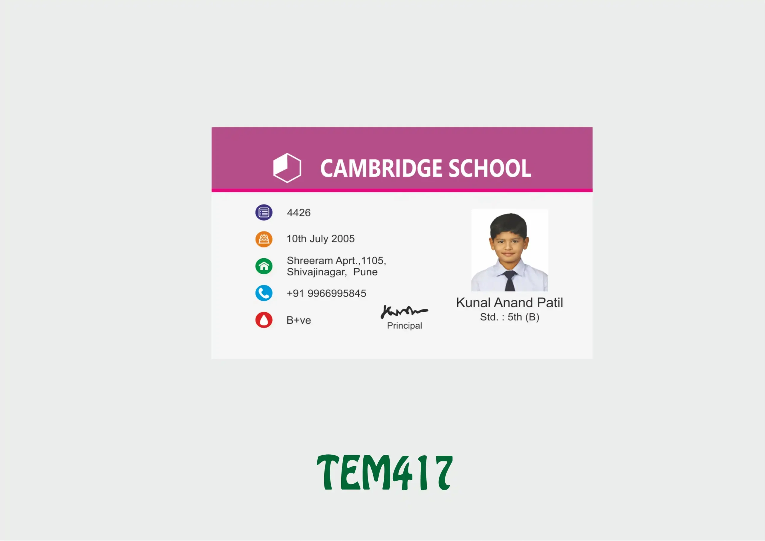 Easy to Edit: Name, Photo, ID No., Class, Designation, Address, Mobile No.